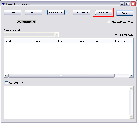 Next, start up the Core FTP Server application (via desktop icon or start menu)..